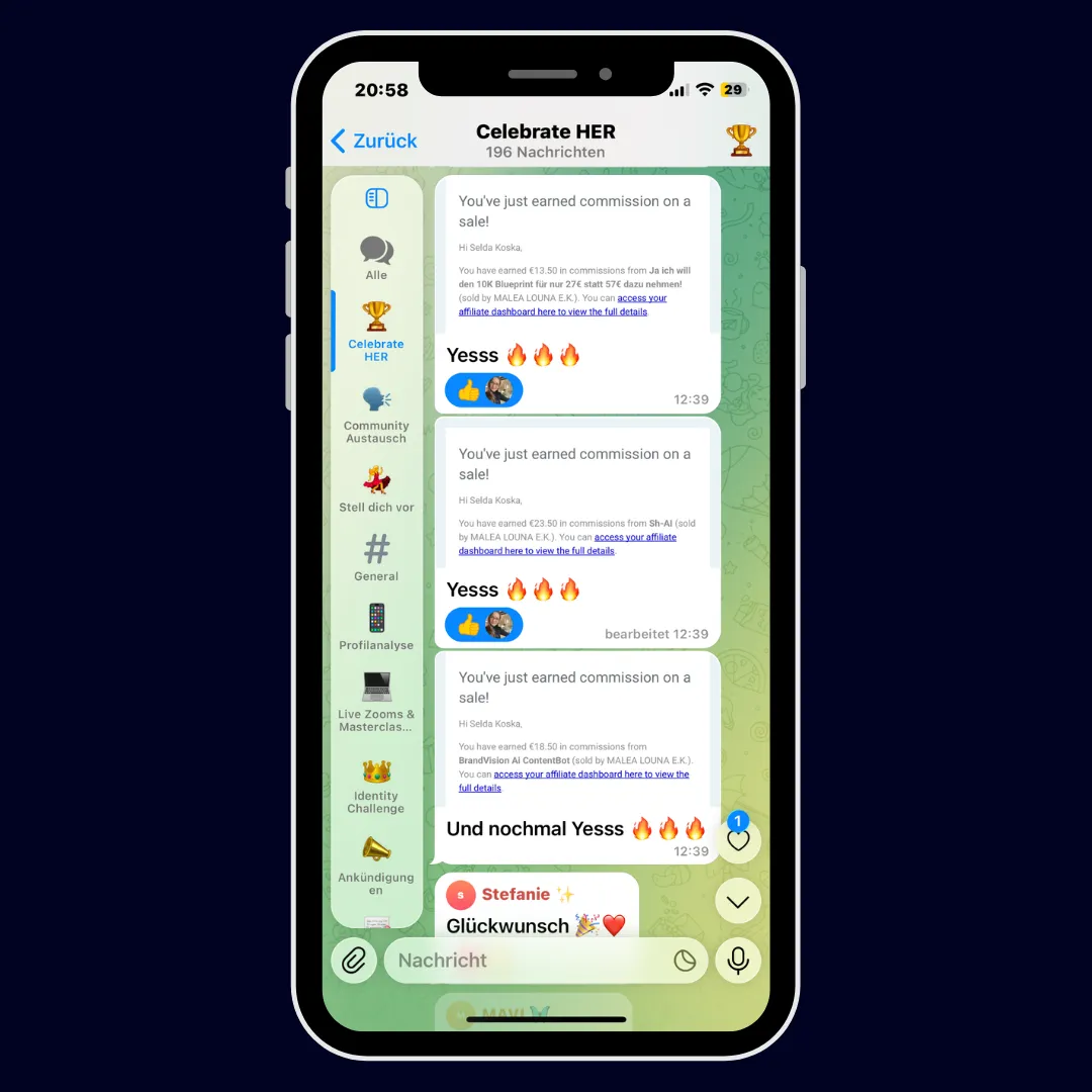 und du hast deine erste Zahlung, deine ersten Anfragen oder deine ersten Nachrichten